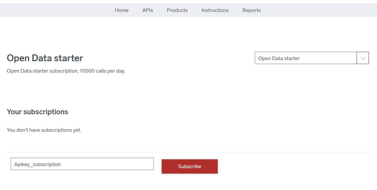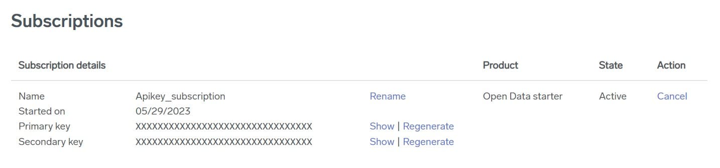 Choose Open Data starter, write a name for subscription and then press Subscribe button.